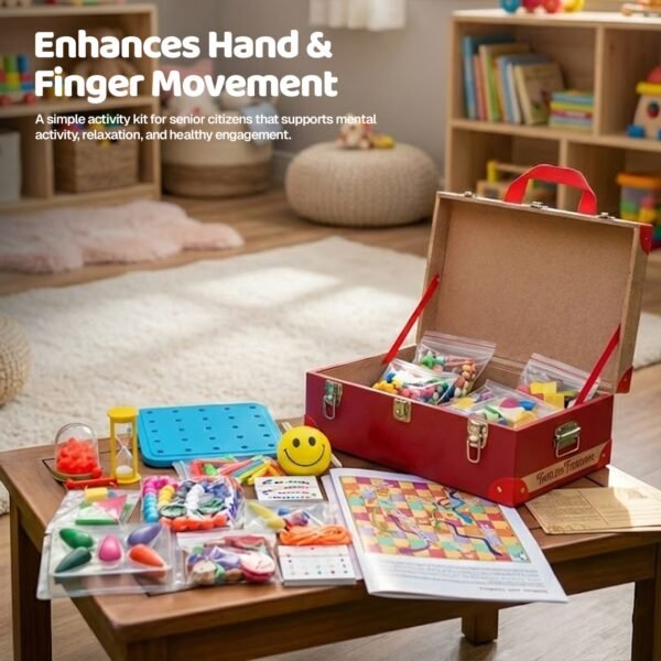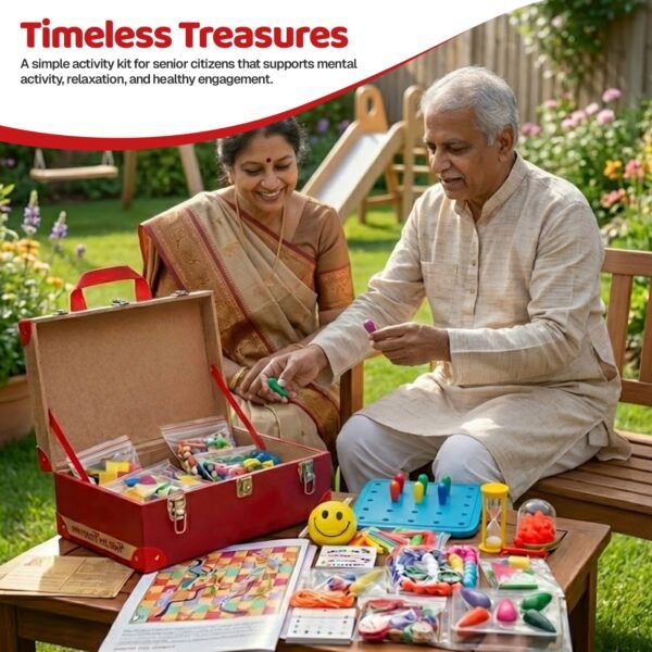 Yaadon Ki Sanduk, also known as Timeless Treasures, is a thoughtfully designed activity kit for senior citizens that helps stimulate memory, encourage gentle movement, and promote emotional well-being through meaningful, engaging activities.